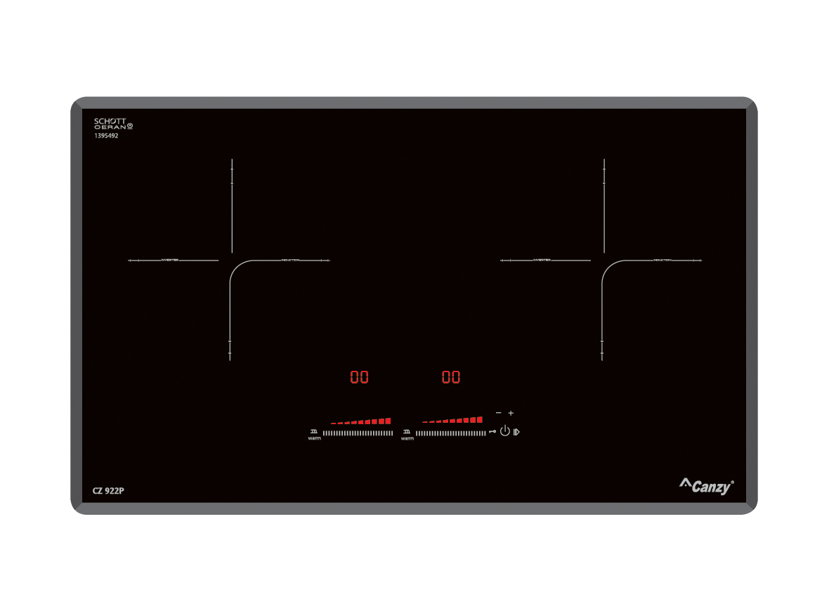 Bếp từ Canzy CZ-922P nổi bật với lối thiết kế theo hình chữ nhật liền nguyên khối kèm theo dáng phá cách vát cạnh vừa độc đáo lại đẹp mắt. Bếp có 2 vùng nấu được phân bố khoảng cách một cách khoa học, sao cho phù hợp nhất cho người nội trợ khi đặt nồi nấu.